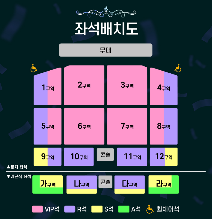 💡 중요 팁: 무대 인근의 VIP석은 조명과 음향 이펙트가 매우 강할 수 있으므로, 소리나 빛에 민감한 분들은 R석이나 S석의 중앙 구역을 고려하는 것이 더 만족스러운 관람을 위한 현명한 선택이 될 수 있습니다.