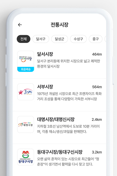 - 보물마켓, 시장을 방문(앱), 대구로(앱): 지역 특화 또는 특정 시장 연계형 플랫폼입니다.