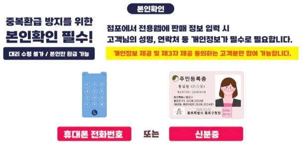 - 환급 시 주민등록증, 운전면허증 등의 신분증 또는 휴대폰 전화번호를 통한 본인 확인 절차가 필수입니다.