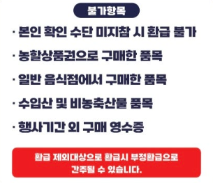 다음 품목은 국산 농산물을 구매했더라도 환급 대상에서 제외됩니다.