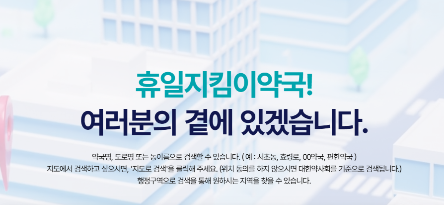 | 약국 | 휴일지킴이 약국 검색 | 지역별 당번제 운영 |