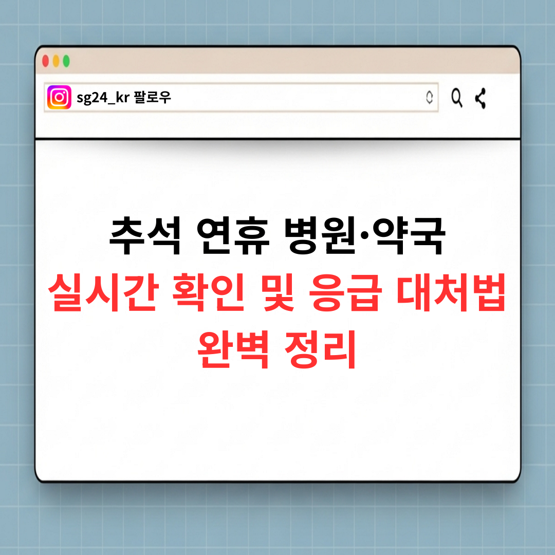 추석 연휴 가족 건강 비상! 문 닫은 병원과 약국에 당황하지 마세요. 응급의료포털 및 휴일지킴이 약국에서 실시간 운영 정보 확인하고 응급 상황 대처법까지 미리 준비하세요.